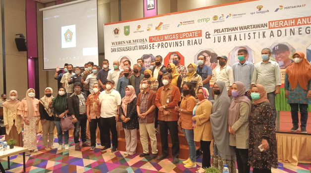 BNEWS - Persatuan Wartawan Indonesia (PWI) Provinsi Riau bekerjasama denga Satuan Kerja Khusus Pelaksana Kegiatan Hulu Minyak dan Gas (SKK Migas) Wilayah Sumatera Bagian Utara (Sumbagut), menyelenggarakan Webinar Media Hulu Migas Update, Sosialisasi LKTJ Migas se Provinsi Riau dan Pelatihan Meraih Anugerah Jurnalistik Adinegoro di Pekanbaru, Jumat (22/10/2021).