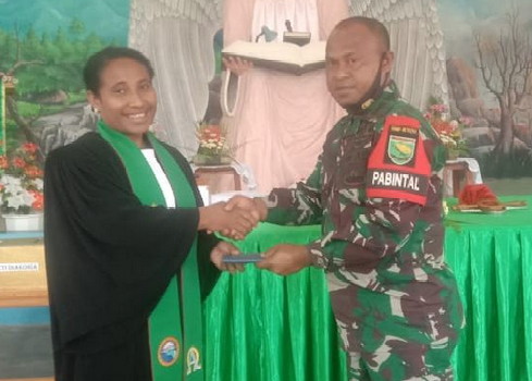 “Saya mewakili seluruh para jemaat gereja mengucapkan terima kasih atas bantuan saudara-saudara tentara dari Pos Walesi yang saat ini bertugas. Semoga Tuhan memberikan balasan yang baik kepada seluruh anggota batalyon yang sedang melaksanakan tugas pengamanan di tanah Papua ini,” ungkapnya.