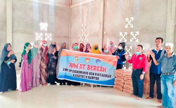 BNEWS - Tim Jum'at berkah Dharma Wanita Persatuan (DWP) UP Dinas Komunikasi, Imformatika dan Persandian Kabupaten Kampar, menyerahkan bahan bangunan untuk Mushala Shirathal Mustaqim Tanjung Kelurahan Pasir Sialang Kecamatan Bangkinang, Jum'at (5/11/2021).