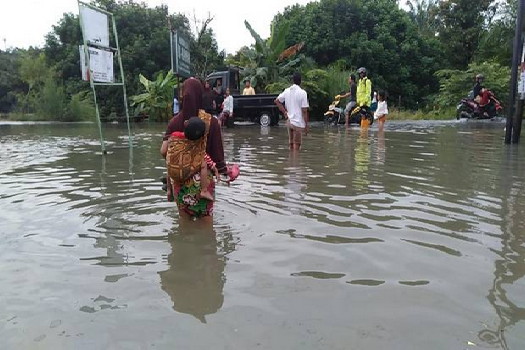 "Banjir di Inhu baru naik, tadi pagi setinggi betis. Banjir Inhu karena air sungai Indragiri meluap akibat curah hujan tinggi," terangnya.