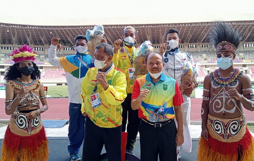 BNEWS - Nasib, atlet NPC Riau, berhasil merebut medali emas pertama cabang atletik di Pekan Paralimpik Nasional XVI Papua (Peparnas Papua). Nasib menjadi yang terbaik dalam nomor lompat tinggi putra yang berlangsung di Stadion Lukas Enembe, Kabupaten Jayapura, Sabtu (6/11/2021) pagi.