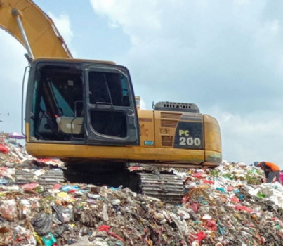 BNEWS - Dinas Lingkungan Hidup dan Kebersihan (DLHK) Kota Pekanbaru, saat ini lagi mengerjakan pola sanitary landfill atau menumpuk sampah di lokasi cekung, kemudian memadatkannya, lalu menimbunnya kembali dengan tanah.
