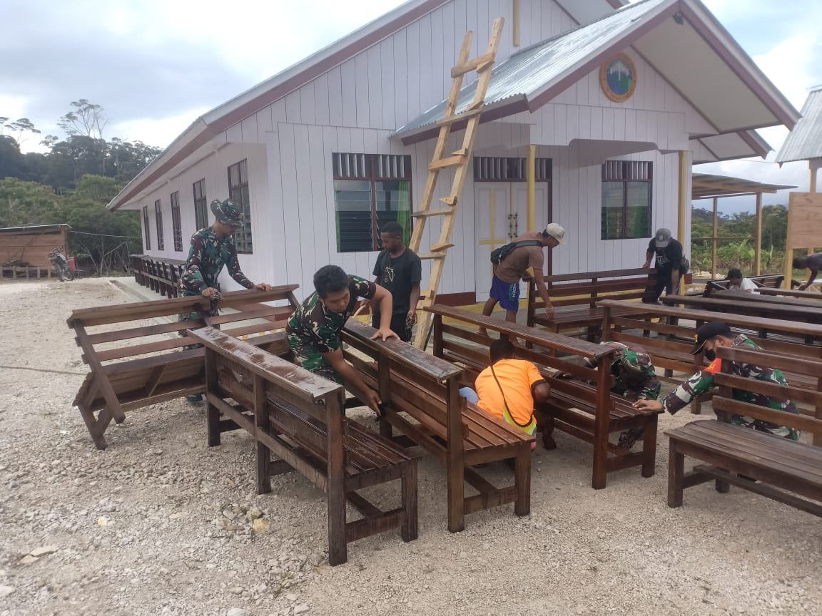 TNI Satgas Yonif RK 751/VJS Goro Bersihkan Gereja yang akan Diresmikan Senin, 15/11/2021 | 17:26