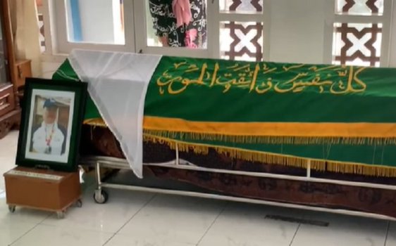 Rumah duka bertempat di Kavling DKI Cipayung, Jakarta Timur. Saat memasuki mulut gang, terlihat bendera kuning sudah terpasang di setiap sudut.