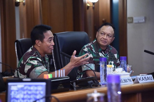 BNEWS - Panglima TNI Jenderal TNI Andika Perkasa mengunjungi Mabes TNI AL dan Mabes TNI AU, yang berada di Kompleks Mabes TNI, Cilangkap, Jakarta Timur, Senin (22/11/2021).