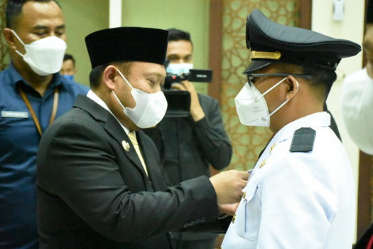 BNEWS - Bupati Kampar Catur Sugeng Susanto melantik dan mengambil sumpah lima orang Pimpinan Tinggi Pratama atau pejabat eselon II, tadi malam, Senin (22/11/2021).