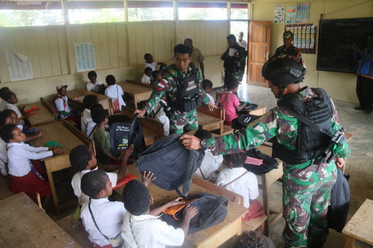 Satgas TNI Yonif RK 751/VJS Kembali Bagikan Peralatan Sekolah di Walesi Selasa, 23/11/2021 | 12:36