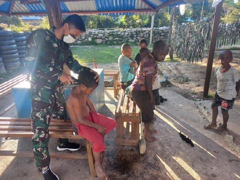 Anggota TNI Bantu Cukur Rambut Anak-anak di Desa Walesi Papua Jumat, 17/12/2021 | 14:05