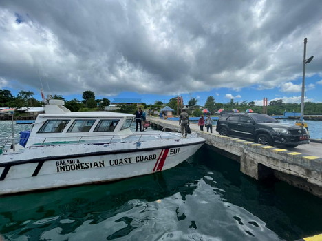 BNEW$ - Stasiun Pemantauan Keamanan dan Keselamatan Laut (SPKKL) Tual Bakamla RI, mengerahkan Kapal Patroli Catamaran 5-07 guna mendukung kegiatan Pemerintah Kota (Pemkot) Tual, untuk monitoring percepatan pembangunan jaringan telekomunikasi di pulau terluar.