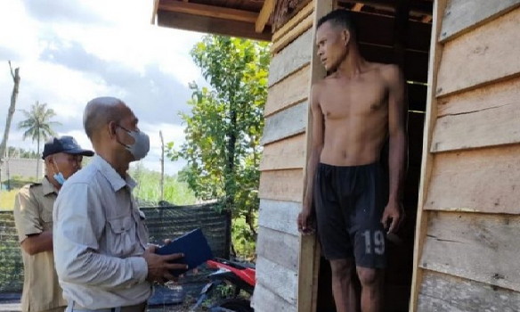 Dalam kegiatan door to door ini, polisi didampingi aparat desa setempat sekaligus memberikan imbauan kepada salah satu suku asli Riau ini.