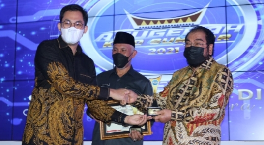 Penghargaan untuk Leonardy ini diserahkan di acara Anugerah KPID Sumbar 2021, Selasa (21/12/2921) di Auditorium Kantor Gubernur Sumbar.