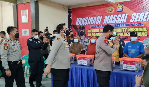 Kapolda Banten menyampaikan bahwa kegiatan vaksinasi massal serentak ini merupakan wujud nyata untuk mencapai target 70 persen guna terbentuknya Herd Immunity Nasional.
