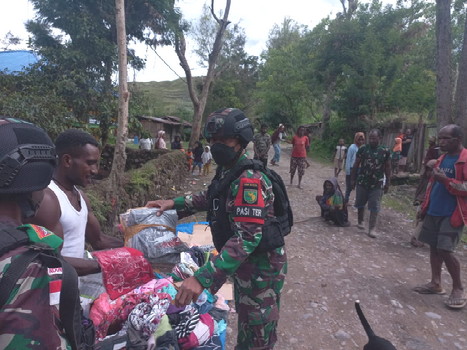 Pembagian baju oleh prajurit TNI di Papua