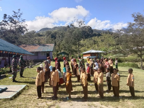 Kedatangan personel Satgas Kodim Yalimo Yonif RK 751/VJS disambut hangat oleh kepala sekolah dan mengizinkan personel pos untuk memberikan materi. Yanti mengucapkan banyak terima kasih atas kesediaan para personel Satgas yang mau mengajar PBB (Peraturan Baris Berbaris) disekolahnya.