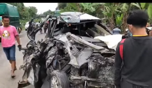 Tabrakan tidak terhindarkan. Yosi, pengemudi Toyota Inova meninggal dunia bersama nama Anaya (9), penumpang Inova. Penumpang lain mengalami luka dan di bawa ke Puskesmas Lirik.**/iin