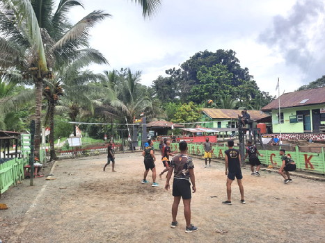 Yosep (17) salah seorang pemuda yang ikut bermain voli merasa sangat senang sudah dilatih dan diajak bermain voli bersama.**/cha