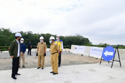 Presiden Jokowi saat meninjau pembangunan tol Pekanbaru-Bangkinang Mei 2021