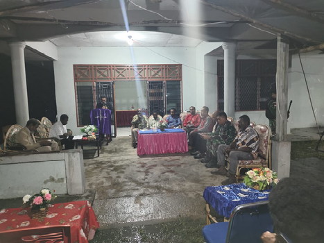 BNEWS - Syukuran Kepala Distrik Senggih di Kabupaten Keerom, Papua, ikut dihadiri perangkat kampung, tokoh adat dan tokoh masyarakat dan TNI Satgas Yonif 126/Kaka Cakti.