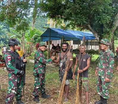 BNEWS - Dalam rangka menjaga kemanunggalan TNI dengan rakyat serta mempererat tali silaturahmi, Pos Batom Satgas Yonif 126/KC melakukan kegiatan Komsos kepada tokoh masyarakat Distrik Batom, Kabupaten Pegunungan Bintang, Papua.