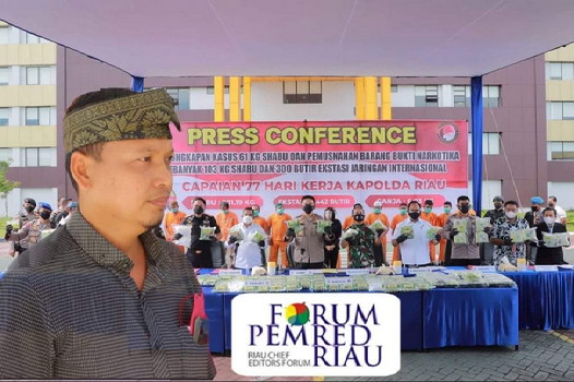 "Saya selaku ketua Forum Pemred Riau memberi apresiasi setinggi-tingginya kepada Kapolda Riau, dengan waktu yang sangat singkat selama masa kerja 77 hari sudah menggagalkan sebanyak ini peredaran Narkoba. Kita tahu, pintu masuk Narkoba di Indonesia salah satunya dari Provinsi Riau, dari jalur laut yang dimotori oleh sindikat Narkotika internasional," kata Ketua FPR Riau.