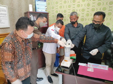 BNEWS - Dipimpin Kasat Resnarkoba AKP Daren Maysar, Satuan Reserse Narkoba Polres Kampar memusnahkan Barang Bukti (BB) narkoba jenis shabu, di ruang Sat Resnarkoba Polres Kampar, Kamis (17/03/2022).