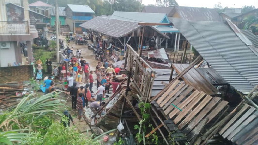 BNEWS - Hujan lebat yang disertai angin puting beliung yang melanda dua desa di Kecamatan Kampar Kiri, yakni Desa Kuntu dan Kuntu Darussalam menyebabkan satu unit rumah semi permanen roboh dan beberapa rumah lainnya mengalami rusak berat dan rusak ringan di kedua desa.