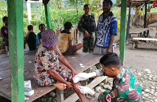 Merespon hal tersebut, tenaga kesehatan Satgas Yonif 126/KC memberikan pelayanan kesehatan secara gratis dengan berkeliling kampung dan mendatangi rumah-rumah warga di Kampung Batom II, Distrik Batom, Kabupaten Pegunungan Bintang.