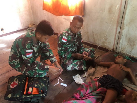 BNEWS - Tim Kesehatan Satuan Tugas Pengamanan Perbatasan RI-PNG Yonif 126/KC Pos Batom, mengobati Alvius Kimki (13) yang mengalami demam tinggi. Tim mendatangi Kimki kerumahnya di Kampung Batom, Distrik Batom, Kabupaten Pegunungan Bintang.