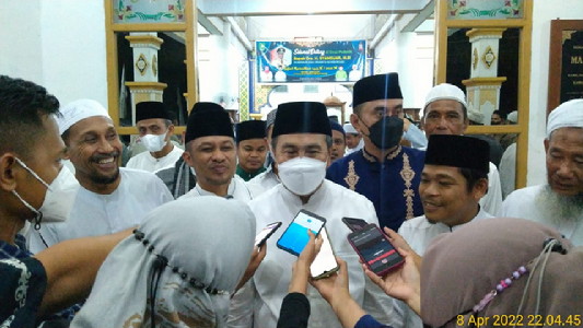 BNEWS - Wakil Bupati Bengkalis H. Bagus Santoso mendampingi Gubernur Provinsi Riau Drs H. Syamsuar, M.Si, melaksanakan safari Ramadhan di Kabupaten Bengkalis pada malam ke 7 Ramadhan 1443 H, bertempat di Mesjid Sabilillah, Jalan KH Rasid di Desa Pedekik Kecamatan Bengkalis, Jum'at (8/4/2022).