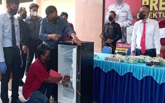 BNEWS - Direktorat Reserse Narkoba Polda Sumsel berhasil mengungkap penyelundupan 10 kg narkoba jenis sabu yang diangkut oleh sopir truk ekspedisi dari Riau. Sabu dalam jumlah besar tersebut tersimpan dalam lemari es.