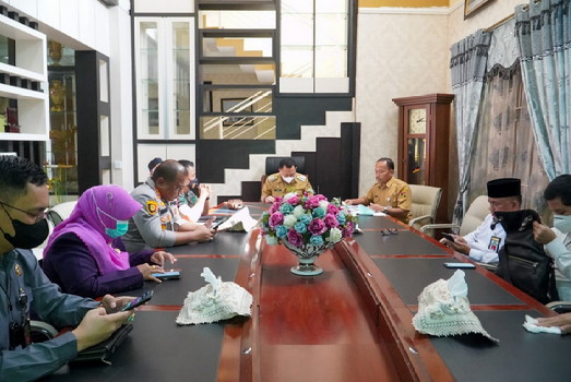 BNEWS - Bupati Kampar Catur Sugeng Susanto, melakukan Rapat Kerja (Raker) dengan Forum Koordinasi Pimpinan Daerah (Forkopimda), di Aula Rumah Dinas Bupati Kampar, Selasa (19/2/2022).