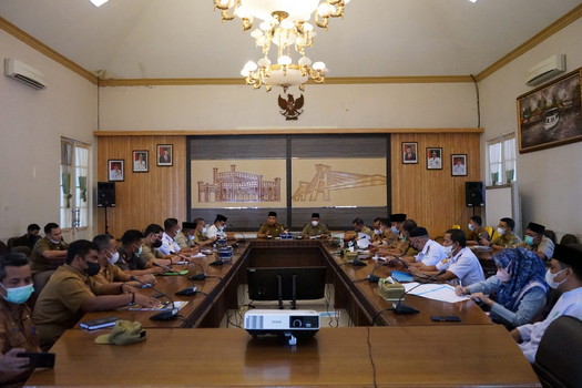BNEWS - Pemerintah Kabupaten (Pemkab) Siak bersama instansi terkait melaksanakan rapat koordinasi terkait persiapan menyambut perayaan Isul Fitri Tahun 1443 Hijriah, di Ruang Rapat Zamrud Komplek Abdi Praja Siak Sri Indrapura, Selasa (26/04/22).