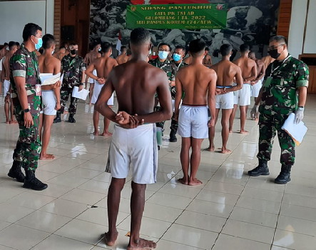 Satu hari setelahnya dilakukan pengumuman hasil calon Tamtama TNI AD yang lulus, yakni sebanyak 25 orang, bertempat di Aula L.B Moerdani Makorem 174 Merauke, Papua, Rabu (27/04/2022).