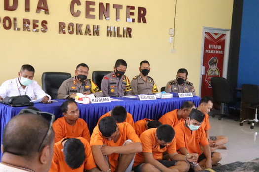 BNEWS - Aparat Polres Rokan Hilir (Rohil) berhasil menangkap 16 orang tersangka pencurian kabel power line atau tembaga dan karpet geomembrane milik PT Pertamina Hulu Rokan (PHR), dari dua lokasi, yakni Kepenghuluan Sintong dan Balam dalam waktu 5 bulan terakhir.