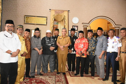 BNEWS - Hari pertama masuk kerja selaku Penjabat (Pj) Bupati Kampar setelah resmi dilantik Gubernur Riau, Kamsol yang didampingi istri, Deswita, bersilaturrahmi dengan tokoh masyarakat, di kediaman KH Alwi