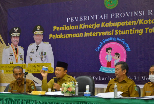 Hal ini dikatakan Wakil Bupati Siak Husni Merza saat memaparkan data terkait stunting di Kabupaten Siak, pada acara penilaian kinerja kabupaten/kota dalam pelaksanaan intervensi stunting tahun 2022 di Hotel Furaya Pekanbaru, Selasa (31/5/2022)