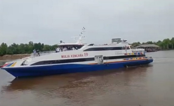 Kapal yang dilepas saat pelepasan keberangkatan perdana adalah kapal Mv Mulia Kencana 19 dengan tujuan Melaka.**/ris