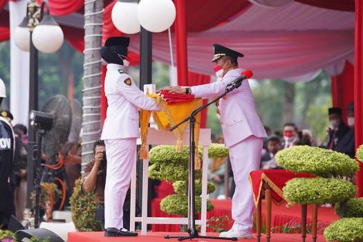 BNEWS - Gubernur Riau (Gubri) H Syamsuar menjadi Inspektur Upacara pengibaran bendera Merah Putih dalam rangka memperingati Hari Ulang Tahun (HUT) RI ke-77 tahun 2022, di halaman Kompleks Kediaman Gubernur Riau, Rabu (17/8/2022).