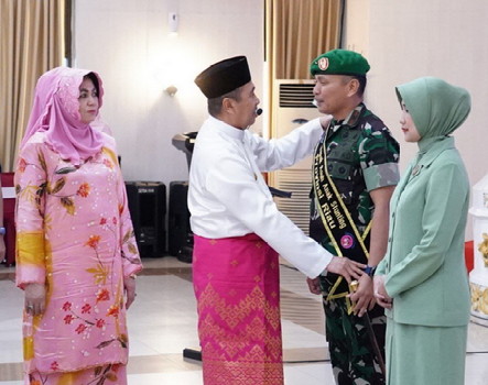 BNEWS - Gubernur Riau (Gubri), Syamsuar didampingi Ketua TP PKK Provinsi Riau, Misnarni Syamsuar, mengukuhkan Dandrem 031 WB, Brigjen TNI Parlindungan Hutagalung dan Ketua Persit Kartika Chandra Kirana (KCK) Koorcab Rem 031 PD I BB sebagai bapak dan bunda asuh anak stunting, di Gedung Daerah Balai Serindit, Jumat (30/9/2022).