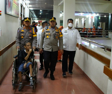Saat datang melihat Rizky, yang cacat sejak usia 2 tahun dan kini sudah berusia 18 tahun, Kapolres juga memberikan bantuan sembako dan yang tunai untuk orang tua Rizky.
