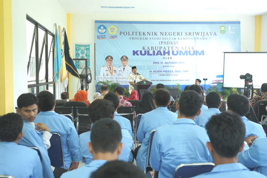 Bupati Siak juga menyemangati 67 mahasiswa PSDKU Polsri yang 90 persen diantaranya merupakan penerima beasiswa Program Keluarga Harapan (PKH) Pemerintah dan Baznas.