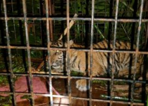 Terlihat harimau mondar mandir dekat mulut perangkap yang dipasang. Tidak lama kemudian harimau masuk dan pintu perangkat tertutup setelah umpan yang dipasang dimangsa.**/zie