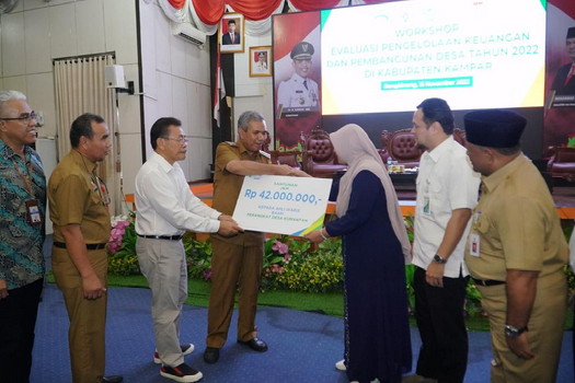 Pj Bupati Kampar juga mengatakan bahwa untuk mendukung peningkatan pembangunan di daerah, Pemerintah meningkatkan anggaran dana desa dari tahun ke tahun.