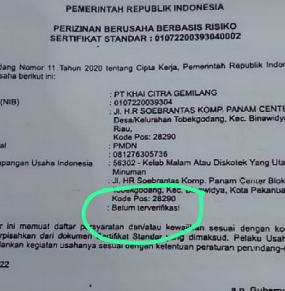 "Karena belum ada izin operasionalnya. Bahkan sampai saat ini kata Pak Helmi, Nomor Induk Berusaha-nya (NIB), masih dalam status belum terverifikasi," kata Erisman lagi.