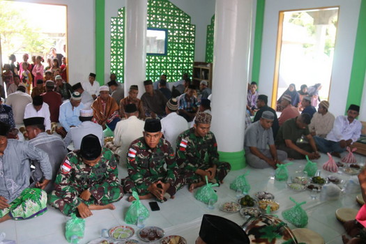 BNEWS - Prajurit TNI Satgas Yonarmed 1 Kostrad, ikut tampil menghibur masyarakat, melalui lantunan salawat pada acara khatam Al Quran Santri dan Santriwati TPQ Ar Rahman, di Masjid Nur Falah Dusun Waekiku, Desa Negeri Lima, Kec. Leihitu, Kab. Maluku Tengah.