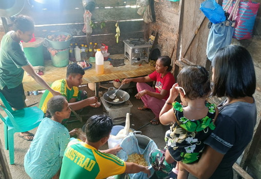 Desa Allang Asaude katanya, merupakan tempat dengan potensi hasil pertanian berupa singkong yang melimpah, sehingga kita memberikan pelatihan cara pengolahannya menjadi aneka olahan makanan.