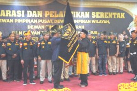 BNEWS - Gubernur Riau (Gubri) Syamsuar melantik dan mengukuhkan kepengurusan Dewan Pimpinan Pusat (DPP), Dewan Pimpinan Daerah (DPD) dan Dewan Pimpinan Khusus Lembaga Laskar Pagar Negeri, periode 2023-2028 di Aula Lembaga Adat Melayu (LAM) Provinsi Riau, Sabtu (28/1/2023).