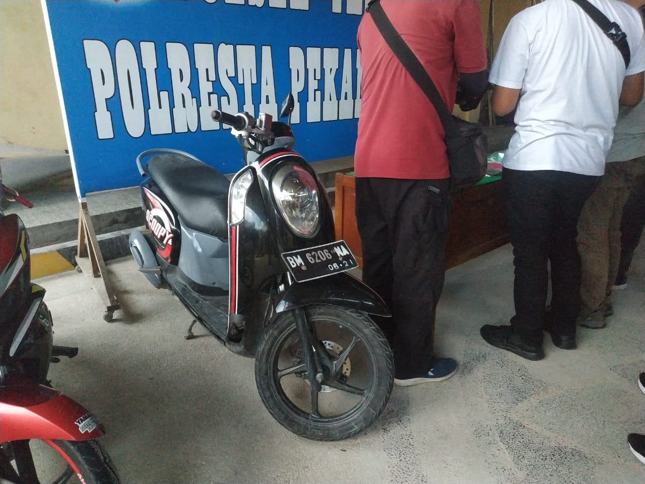 Motor Scoopy itu raib ketika korban sedang melayani tesangka Dodi belanja makanan di kedainya Jalan Delima Perum Griya Pasir Mas, Kelurahan Tobek Godang, Kecamatan Tampan Kota Pekanbaru.