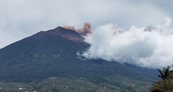BNEWS - Siang ini, Rabu (15/2/2023), Gunung Kerinci yang terletak di perbatasan Kabupaten Kerinci, Jambi dan Solok Selatan kembali erupsi dan menyemburkan kolom abu setinggi lebih dari 200 meter.