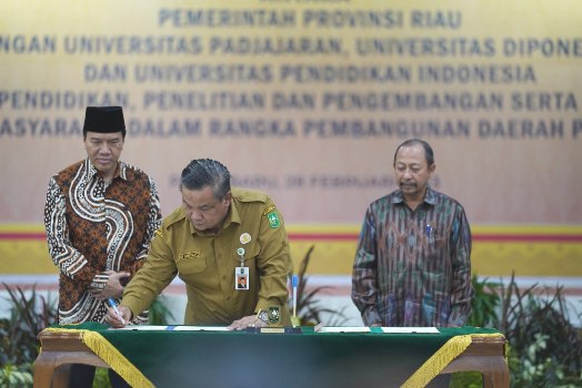 BNEWS - Pemerintah Provinsi (Pemprov) Riau menjalin kerja sama dengan Universitas Padjajaran (Unpad), Universitas Diponegoro (Undip), dan Universitas Pendidikan Indonesia (UPI), dalam rangka pembangunan Provinsi Riau yang lebih baik,
